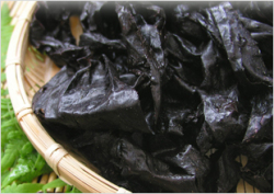 味い海苔だ、なんて美味しいんだ、と皆で感激しながら頂いています。名刺サイズ分の十六島海苔をお椀に入れ、だし汁と少し醤油を垂らしてお吸い物にすると、もうお料理屋さんの一品です。採集、加工の方々、ありがとうございます。